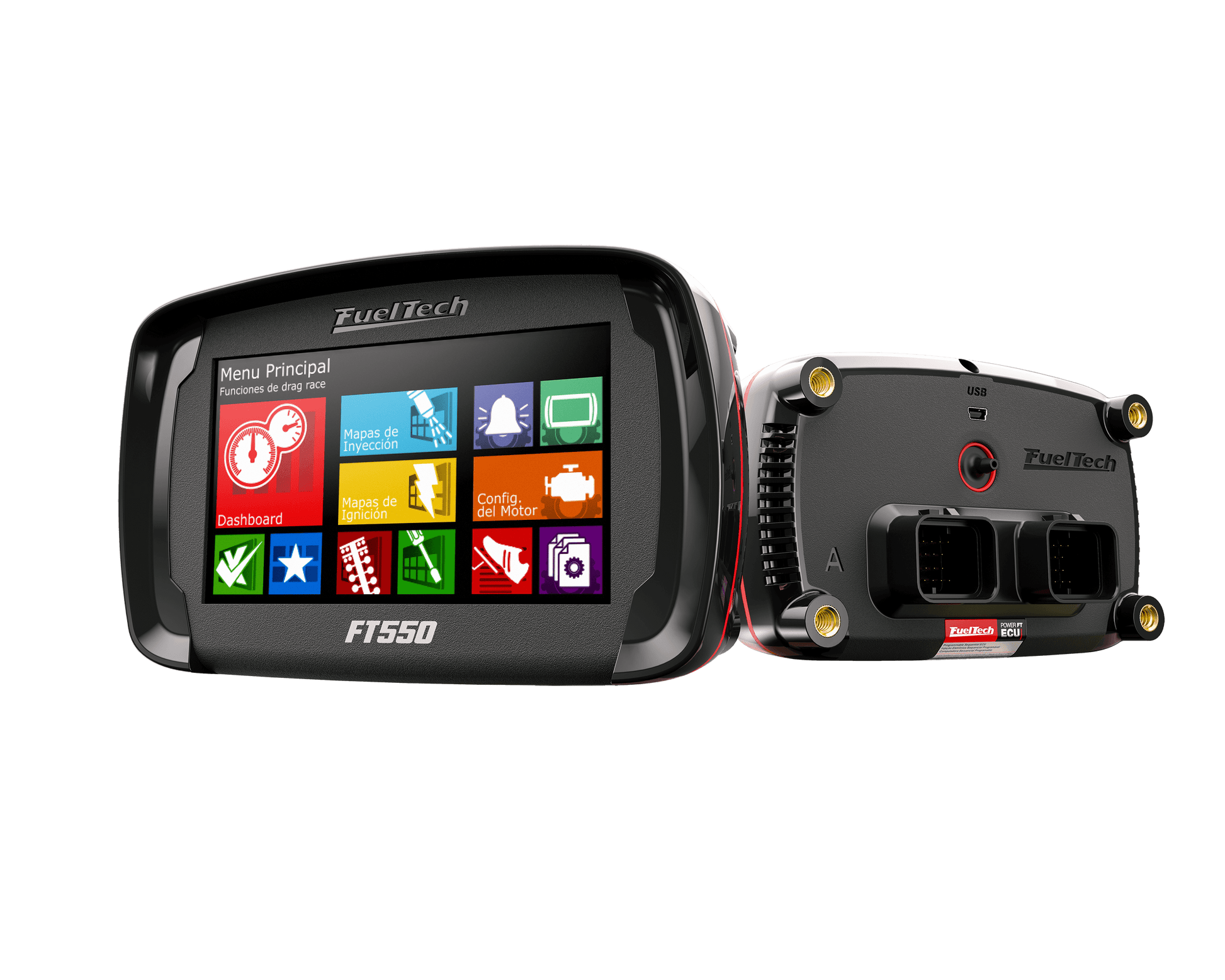 The FuelTech FT550 is the best ECU for projects that require more features, including GearController (power-shifts), built-in accelerometer (G-meter) and gyroscope; In addition to all PowerFT ECU line features such as sequential injection and ignition, O2 closed loop, active traction control, integrated BoostController, internal datalogger, progressive and PRO-Nitrous controls, odometers, electronic throttle control, inclinometer, drag racing features and more.